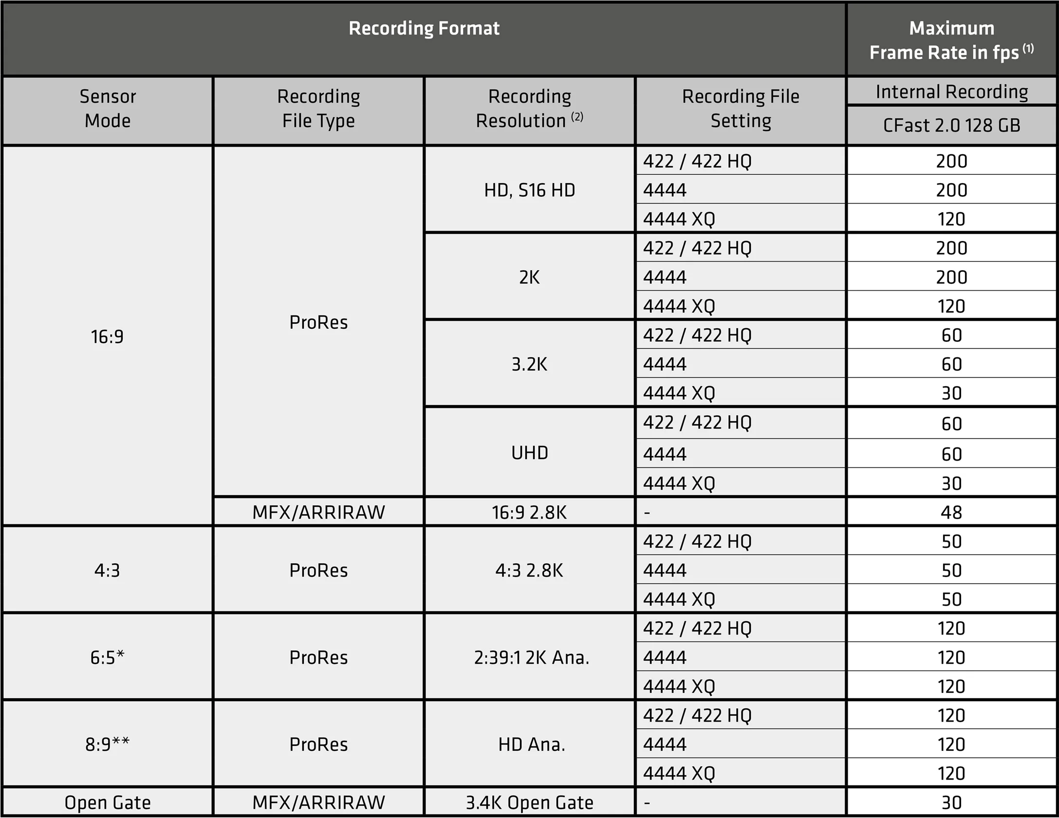 35 format film-style digital camera with lightweight and compact carbon body, 4:3/16:9 switchable active sensor area, support for ARRI MVF-1 viewfinder, built-in remote control capabilities via Electronic Control System and Wi-Fi, support for cforce motors, built-in motorized ND filters, interchangeable lens mounts and ARRI Lens Data System.